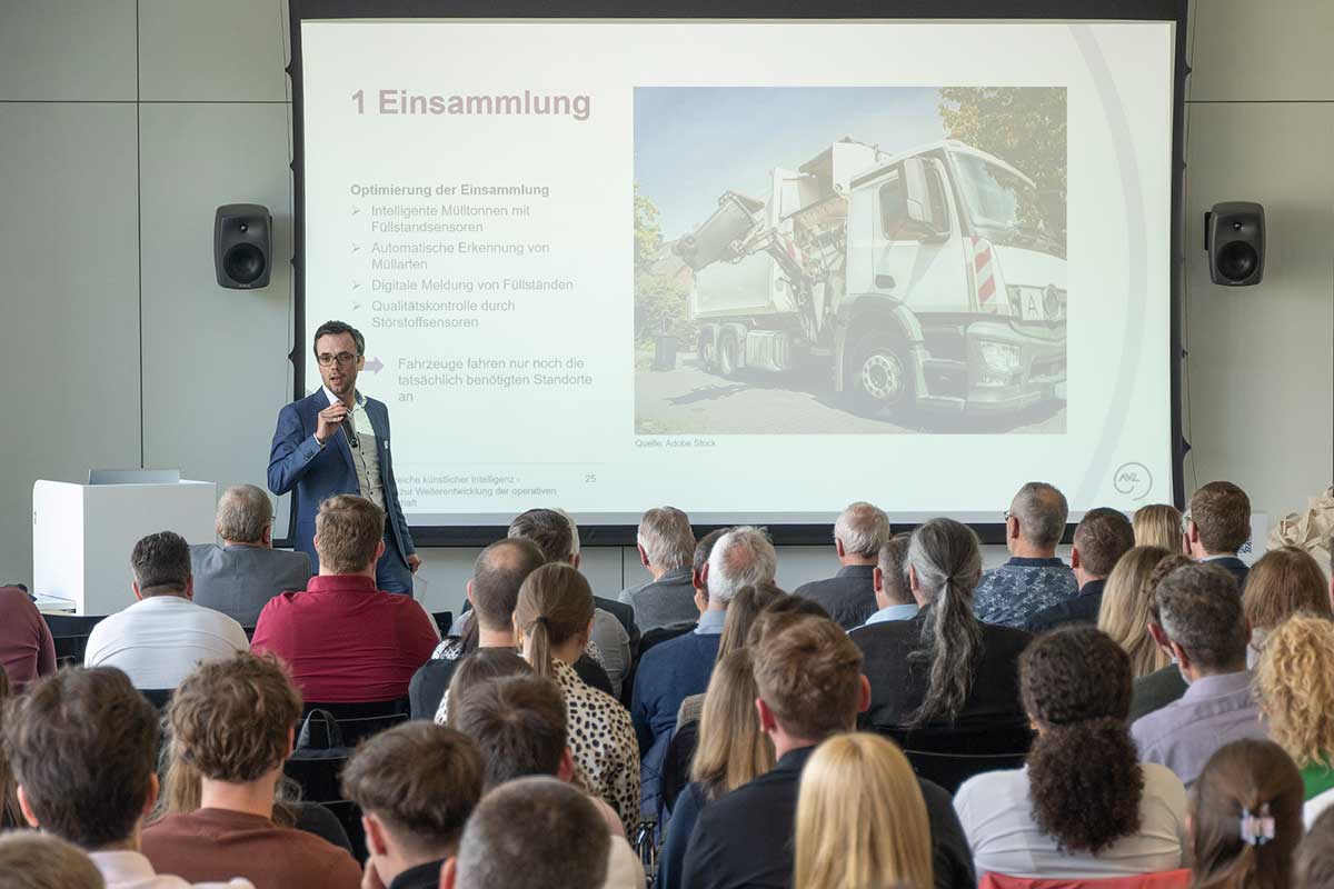AVL-Experte Sebastian Löschner ordnete KI-Anwendungen in sechs zentrale Felder der kommunalen Abfallwirtschaft ein: Erfassung, Einsammlung, Transport, Sortierung, Recycling und Verwaltung. Beispiele reichen von intelligenten Chips an Mülltonnen, die Fehlwürfe erkennen und den Füllstand automatisch melden, bis hin zu optimierten Tourenplanungen – ein wichtiger Beitrag zur Ressourceneffizienz in einem rohstoffarmen Land wie Deutschland.
