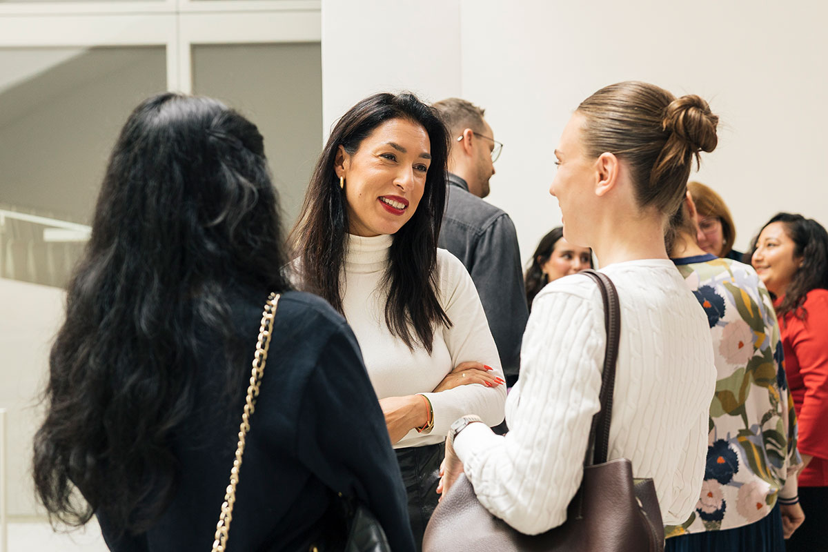 In ihrer Keynote betonte die Unternehmerin und Autorin Tijen Onaran, dass die Zeiten zwar herausfordernd sind – für Frauen aber schon immer gewesen seien: zwischen Beruf und Familie, zwischen hohen Ansprüchen und der Tendenz zur Rechtfertigung, zwischen verschiedenen Rollen. Sich davon nicht entmutigen und den inneren Kritiker nicht so laut werden zu lassen, das rät Onaran jungen Frauen. „Ohne Frauen gibt es kein Leben, keine Wirtschaft, keine Gesellschaft“, betonte Onaran. Ihr Herzensthema: Vernetzung. Netzwerke helfen an sich selbst zu glauben, schafften Zugänge und förderten Sichtbarkeit. „Netzwerken ist ein Lernprozess“, so Onaran, „zuerst beobachten, zuhören, dann handeln.“ Sie rief die Studentinnen dazu auf, hartnäckig an die eigene Idee zu glauben – auch, wenn nicht jeder Schritt sofort gelingt. „Wenn ihr das nächste Projekt verhandelt oder ein Buch herausbringen möchtet, dann denkt daran, wie viele Neins ich kassiert habe.“ In der Pause nahm sich Onaran Zeit für Gespräche und Selfies mit den Studentinnen – und hinterließ spürbare Inspiration und Aufbruchsstimmung im Raum.